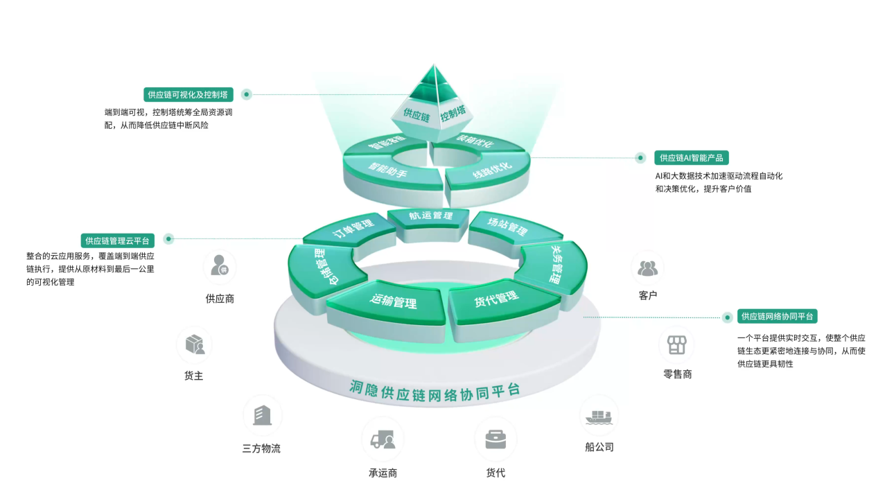 洞隐基于AI驱动和数据洞察,打造了一个整合的连接客户、供应商及承运商的全球供应链协同网络。