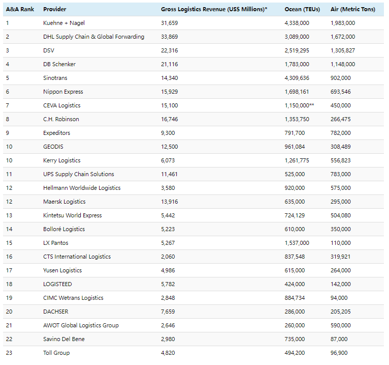全球货代企业25强榜单揭晓