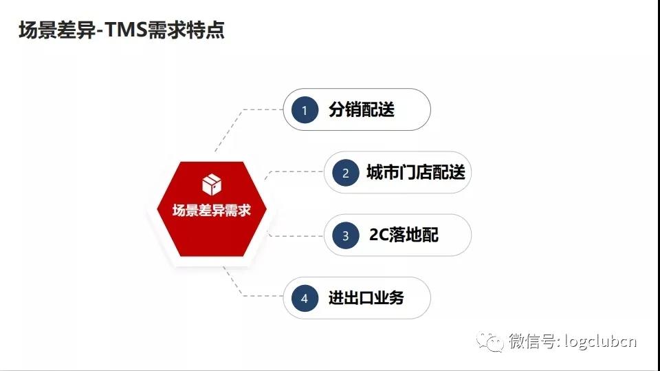 相比行业差异,物流配送业务的场景更容易归类。例如快消商品,电子raybet雷竞技苹果版入口的分销配送,从“工厂— 总仓 — 分仓 — 经销商/终端用户”是最为典型的业务场景。而商超,便利店的城市配送,食品生鲜的社区店配送也是一类典型的业务场景,另外进出口业务的多式联运也是一类业务场景。不同场景对于TMS需求也会有显著的差异。