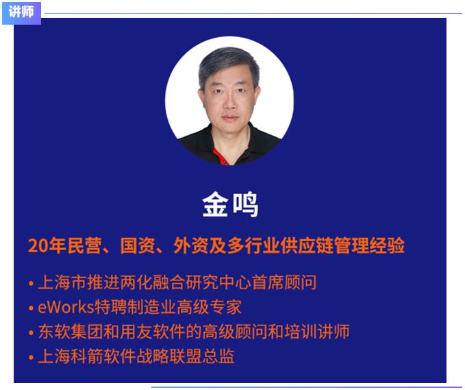 金鸣先生将凭借丰富的从业经验,从以下四个方面,为大家“支招”新态势下汽车供应链系统升级之道。敬请期待!