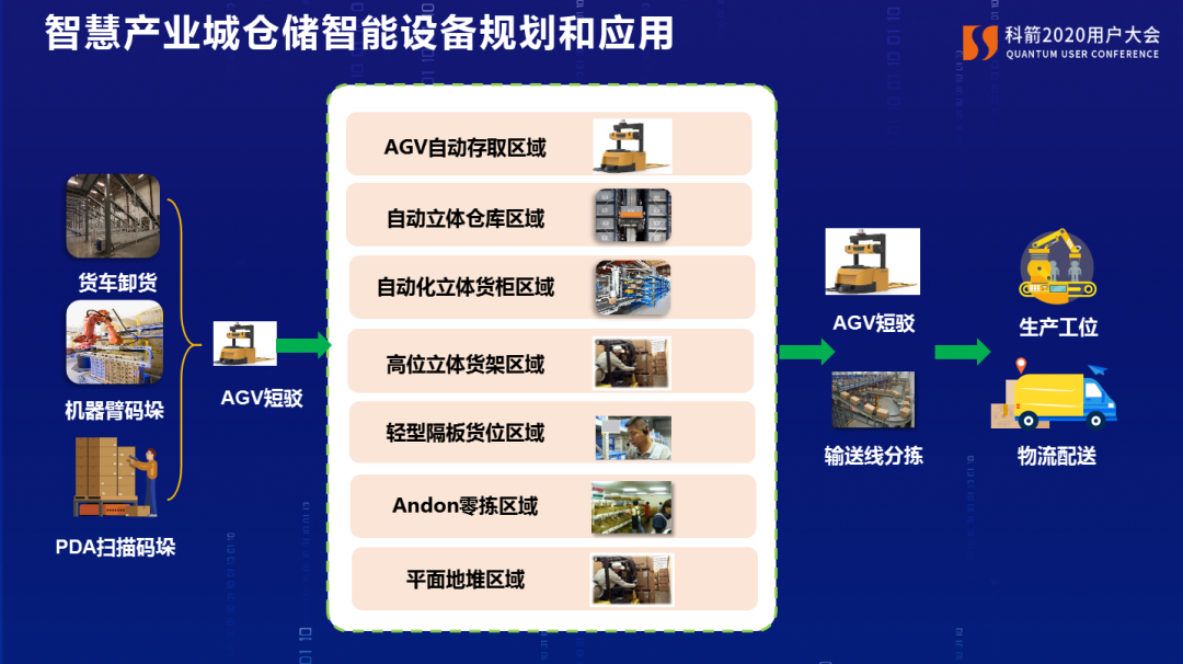 智能云仓对生产仓的规划和应用主要是针对自动化的高度集成,考虑到要与地库、机器人堆垛、AGV自动存储等先进自动化技术进行集成,还有一定的平仓、货架,都考虑在内。