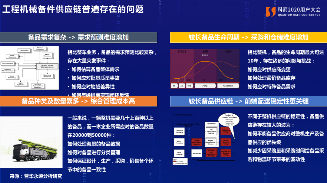 当前,工程机械行业市场持续向好,存量市场不断增长,客户对raybet雷竞技苹果版入口交付及售后服务的要求越来越高,不断推动着装备制造企业对供应链效率的变革和创新。仓储与生产、供应、销售、售后紧密相关,对供应链效率提升有着举足轻重的作用。而工程机械备件供应链普遍存在以下问题: