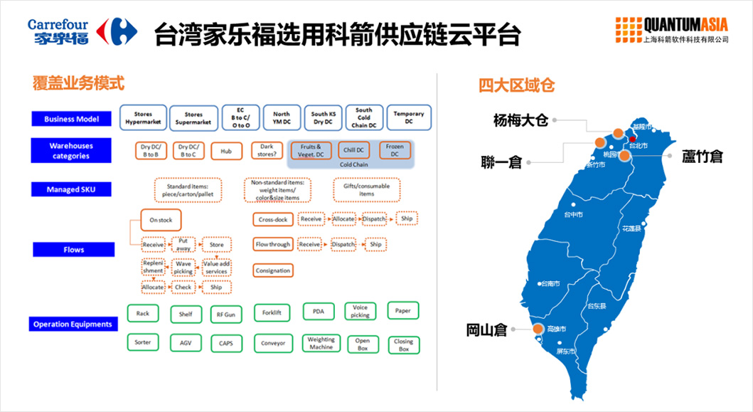 家乐福目前在台湾拥有136家门店,明年可能达到400家。在全球传统零售业向新零售的业务变革大潮流中,同样伴随着整个供应链管理的变革,这都给家乐福台湾供应链后端的仓储和运输管理提出了更高的挑战和要求。