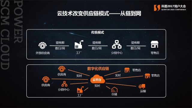 云技术改变了供应链的模式,使供应链从传统的链式到网状,信息实时传递,多方高效协同,提高供应链效率及响应能力。