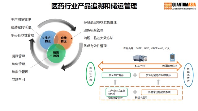 金鸣先生在演讲中将医药行业的追溯管理分为三大领域。