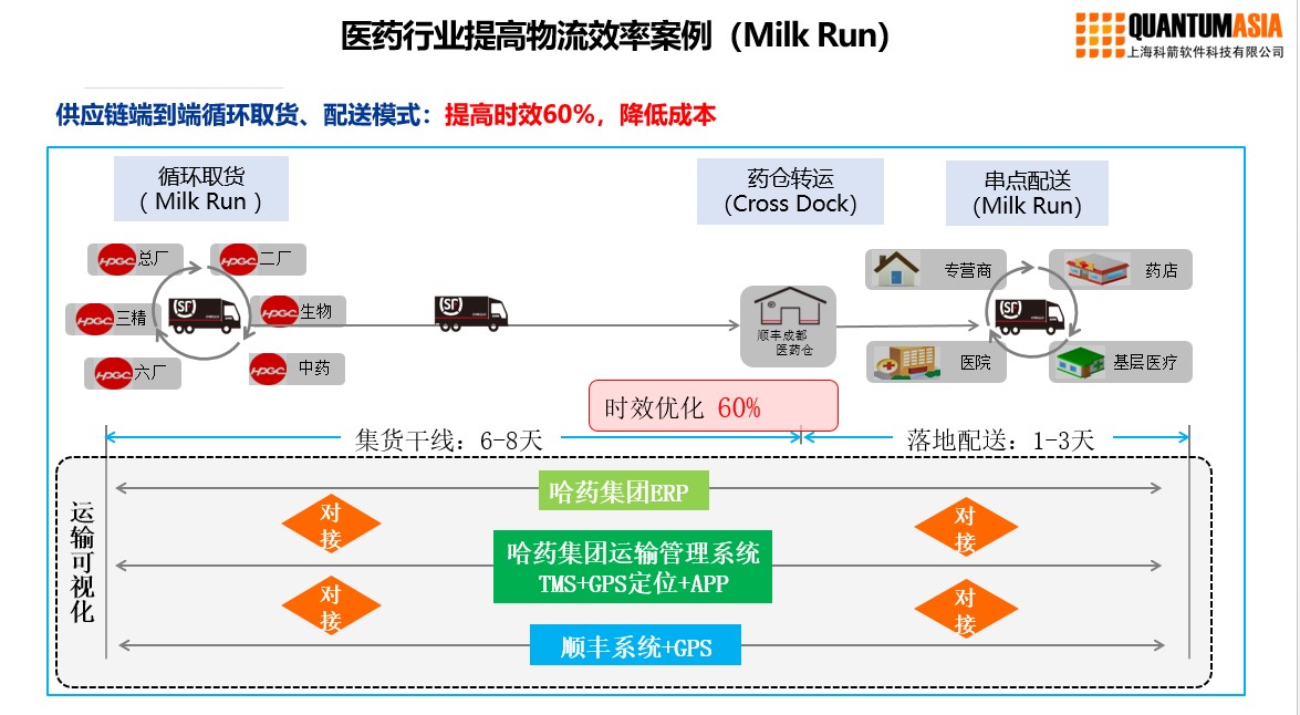 国家医药政策、市场环境对医药物流提出了更多的要求,如销售规模扩张对库存的挑战;全国各地药监部门对医药仓储配送质量提出更高的要求。科箭多年来深入了解行业需求,为医药及医疗器械企业提供仓配一体化解决方案,服务于如哈药、迈瑞医疗、鱼跃医疗等医药及医疗器械企业。2017年帮助哈药推行区域专营模式,并对供应链体系进行重构,将原来下沉在工厂下的物流职能提升至集团大物流中心统合管理,强化了集团物流总部规划和优化的职能、执行监管、资源整合、成本控制及客户服务。并使哈药依托科箭TMS云服务平台,在3个月内快速构建其配送信息化管理平台,配送时效优化60%,并实现集约货源提升运价议价能力等,获得集团管理层的高度认可。