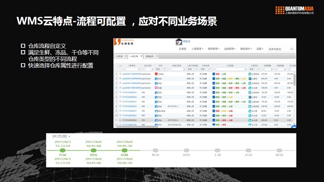 -如WMS云针对不同仓库品类,不同的仓库操作流程,只要配置好仓库属性,在实施时选择对应的逻辑仓即可,如生鲜仓可以跳过上架这一部,所有这些都直接配置完成不需要二次开发,使快速上线成为可能。