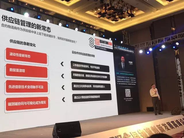 对于仓储来讲,一样的,云服务可以让你从容面对很多挑战。我举一个例子,以前一个货主要在一个新的城市开一个仓库,只需要几百平方米,作为合约物流商来讲去哪找一个几百平方米的仓库?传统的做法必须到那边部署一个无线的网络,这样才能把WMS延伸过去。我们利用先进的移动互联技术,你只需要有一个智能手机,在上面装一个APP,边上连一个蓝牙扫描枪,WMS就通过去了,这个以前是很难做到的。特别昨天有一个最新的新闻,中国联通刚刚推出真正的不限流量的套餐,这样的一些新的互联网变化,我们都把它引入到供应链应用里面,帮助我们从容应对挑战。