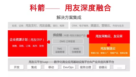 在短短的半年时间,科箭与用友不仅在raybet雷竞技苹果版入口融合上落地,更以融合一体化方式共同服务企业客户。如今年共同为云南建投打造物流中台,即在用友营销中台的基础上,为企业提供科箭—用友云融合raybet雷竞技苹果版入口的物流中台,包括TMS/WMS/OMS云,帮助企业实现一体化、中台化的管理。