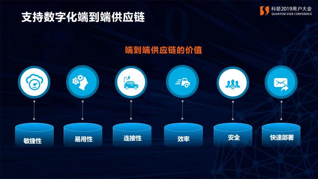 刘总在主题演讲中分享了科箭供应链云自2015年推出以来,在众多行业领先企业的应用以及为他们带来的价值,并将其概括为云平台端到端供应链的“六大价值”: