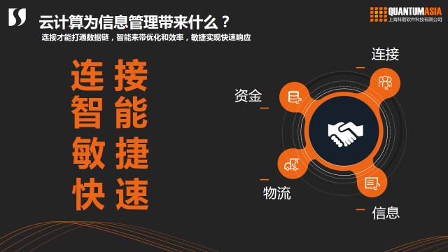 供应链管理涉及到相应的环节和角色。原来这些供应链上的企业都是各自为战,有了云以后,我们可以搭建一套系统,让所有这些相关的角色都能够进入这个社区,所以我们说首先云计算可以更方便地连接供应链上相关企业到一个协同平台,只有打通数据链才能使供应链更高效运营。