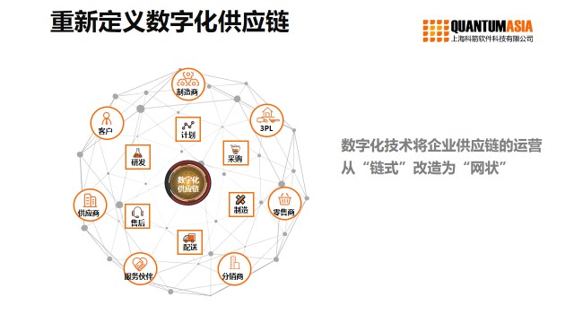 智能供应链,数字化是基础。制造业必须将raybet雷竞技苹果版入口研发、原料采购、生产制造、配送运输、客户服务等环节都完全数字化,这样就可以为所有的参与者从原材料、零部件和总成的供应商,到完成供应和成品的仓储及运输过程的物流商,以及服务最终客户的经销商及服务商,提供完全透明的,完整的数字化网络。