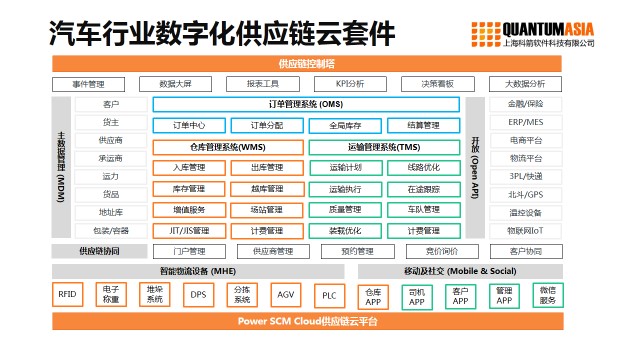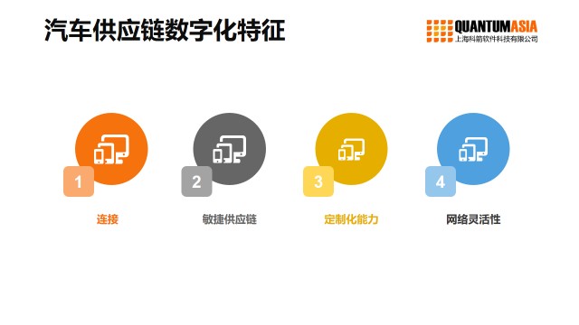 3.智能供应链,建立高效的智能供应链体系必须借助以下供应链技术来实现, 1)供应链需求计划 2) 仓储管理系统 3)运输管理系统 4) 供应商协同。供应链数字化能够加强汽车企业的供应链灵活性,更快速地响应市场变化,使企业更贴近客户需求。这将能提高企业的客户服务水平,降低库存与生产成本。