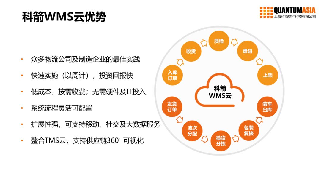 科箭在供应链领域拥有十多年的经验,是国内最早转型云端的供应链软件公司。WMS云是基于行业沉淀设计的专业SaaS仓储管理raybet雷竞技苹果版入口。针对制造、零售、物流及电商等行业,WMS云流程可配置,场景化设计,投资回报快。