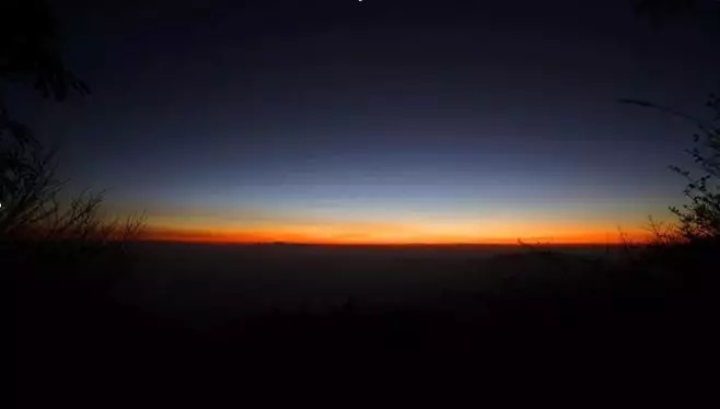 黎明时分,太阳还未露出地平线,天开始蒙蒙亮了。
