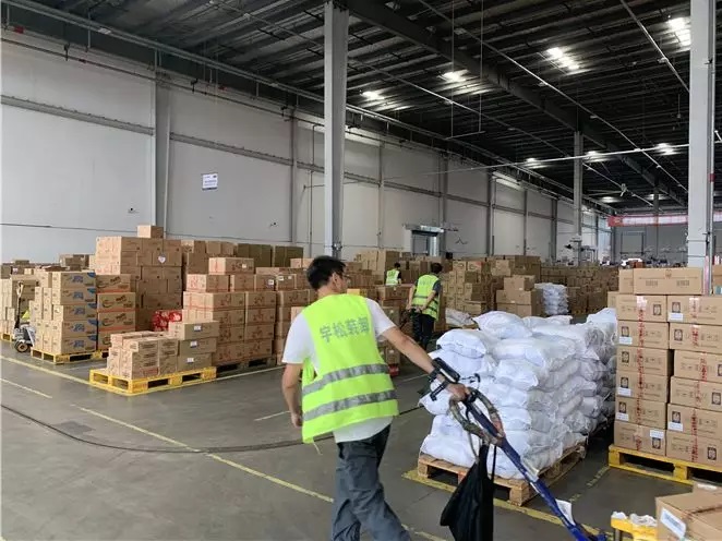 太阳已经运行到中天。暂存区已经堆积了大量货物,等待仓库人员进行分货。