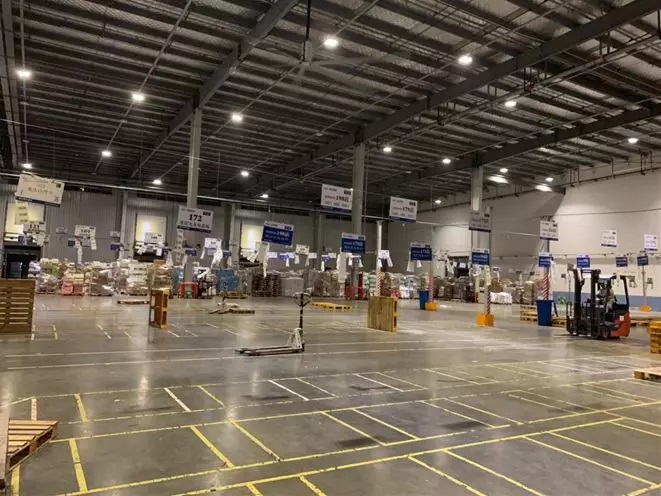 有些货需要用越库的模式,从收货到发货的时间尽量短,提升效率。在货物送到仓库后放在暂存区,当天分货派送至门店。